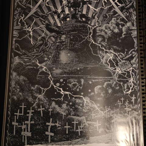 De sidste 4 plakater på ét foto er krøllede og misfarvede og revnede mm.