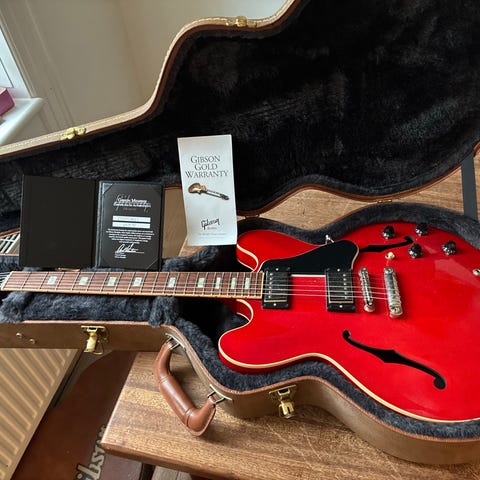 Gibson Memphis-guitar, ES-275 P90-VOS inkl. original hardcase- etui. Købt i 2017, aldrig spillet på. Kan også afhentes i Aalborg og Aarhus.