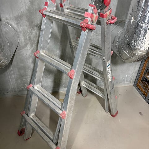 Alu stige med 3 trin, egnet til brug ved mindre opgaver i hjemmet eller værkstedet. Stigen er lavet af aluminium og har en rød farve på trinene.