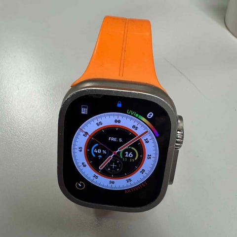 Apple Watch Ultra 2, sort med 2 sorte remme. En gummi og en i stål