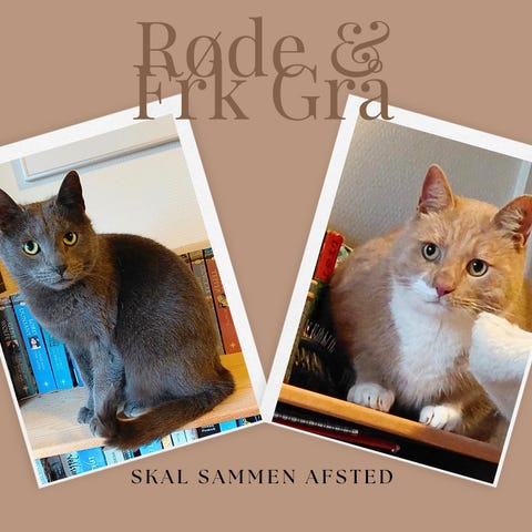 Frk. Grå & Røde – to smukke og rolige katte søger fælles hjem