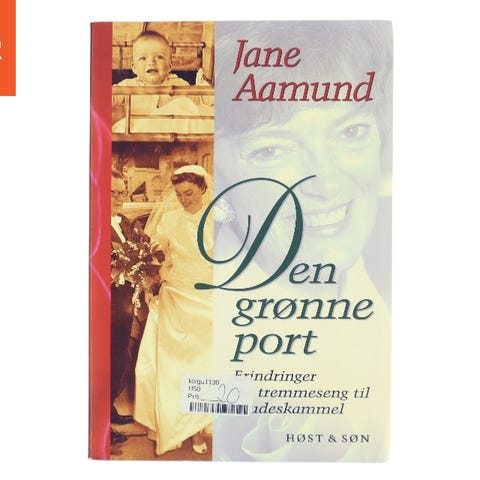 Den grønne port, Jane Aamund, genre: biografi, Flot bog kun læst 1 gang af 1 person. Erindringer fra tremmeseng til brudeskammel. Høst & Søn. Humoristiske beretninger om Jane Aamunds barndomsoplevelser. Passion, Satire, Humor. 332 sider. Nypris 248,00 kr.