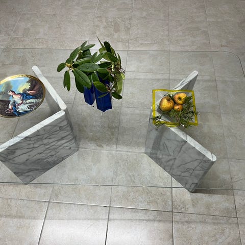 Glasbord med en bordplade i klart glas og en bund i sort marmor. Bordet har et moderne design med en solid marmorbund, der understøtter glaspladen. Velegnet som sofabord i stue eller opholdsområde.