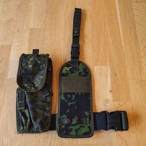 Letvægts universalsele med sidelommer og plads til front beskyttelsesplader i multicam
