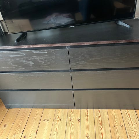 Malm kommode, sort, 6 skuffer