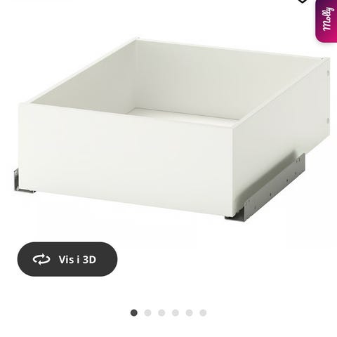 Pax skuffer 100x57, 2 hvide, 1 hvid med glasfront, og en netkurv, sælges samlet for 350 kr. Der mangler dog 1 sær skinner, som kan købes i Ikea