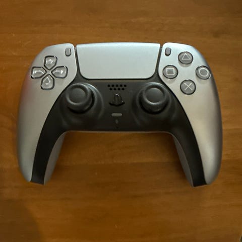 Sony DualSense trådløs controller til PlayStation 5 med rød og sort farvetema. Inkluderer ekstra greb og knapper til forbedret spiloplevelse.