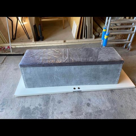 Stadig i pose. Købte to men skal kun bruge den ene. Fra Ikeas Stockholm 2025 kollektion. Ægte læder i lysebrun og m polstrede knapper. Str 60*180*5cm. Virkelig god kvalitet at sidde og ligge på. Passer F.eks perfekt på Ikeas Bestå skabe. Sidste billede viser den bænk jeg har lavet af hynden og Bestå skabe