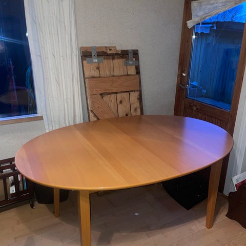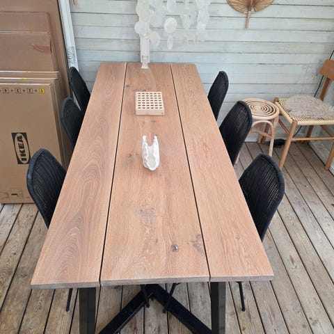 Pladerne er 45 cm hver 45, så bordet kan blive 207cm.