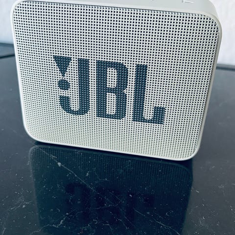 JBL Go 2 Bluetooth-højttaler i rød/orange farve. Kompakt og bærbar design med indbygget genopladeligt batteri. Understøtter trådløs Bluetooth-forbindelse til nem afspilning af lyd fra kompatible enheder.