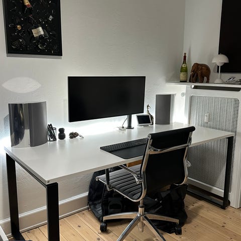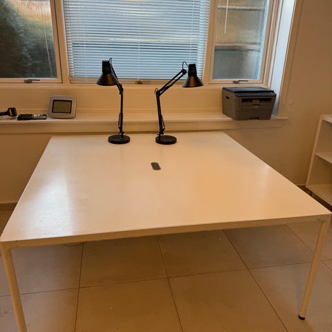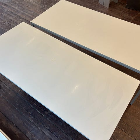 Skrivebord fra aj produkter, manger et gevind til en af fødderne på højre bordben, men bordet står stabilt og lige alligevel.