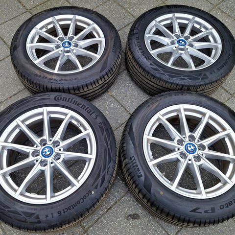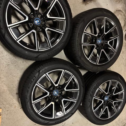 Komplet 20” gmp hjulsæt til bmw i4 med bmw nav kapsler. Passer også på 3-serie og 4-serie. Smal og bred dæk kombination hjulsæt er fra 2025 altså nye og kørt under 1000km. Monteret med Michelin dæk. Vi sælger dem da det lykkedes at give dem en “ubetydelig” rids inden der kom vinterhjul på og vi har besluttet der skal nogle 17/18” på istedet.