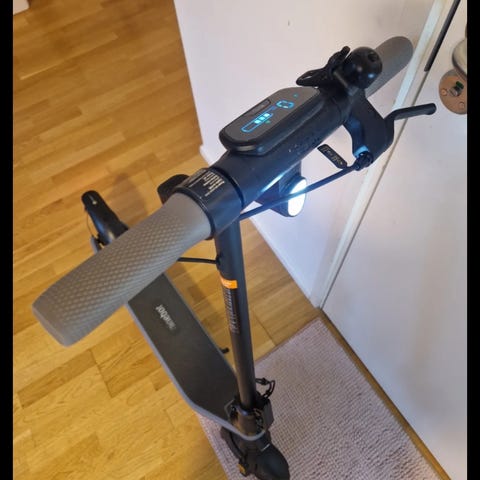 Har automatiske bremser og manuelle bremser. Virkelig fedt el- løbehjul.