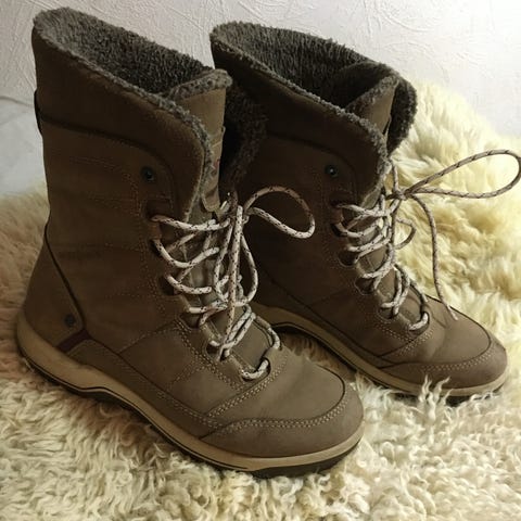 ECCO Vinterstøvler i størrelse 42, farven sort. Støvlerne er fremstillet med Gore-Tex materiale, hvilket giver vandtæthed og åndbarhed. Designet til at holde fødderne varme og tørre under vinterforhold. støvlerne er med snørebånd.