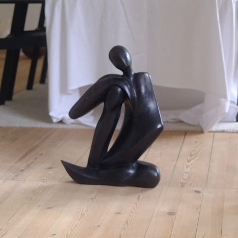 To håndlavede små skulpturer i ler med malet overflade. Begge skulpturer har en hul underside.