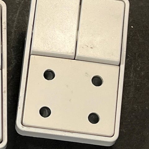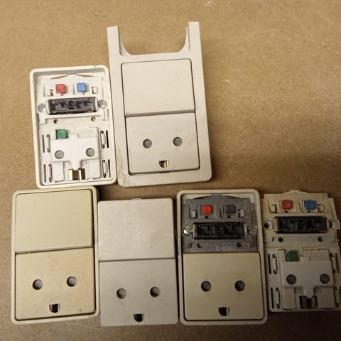 8 stk dobbelt fuga stikkontakter. Der mangler gribere og skruer til nogle af dem. De trænger til en fugtig klud. Prisen er for dem alle