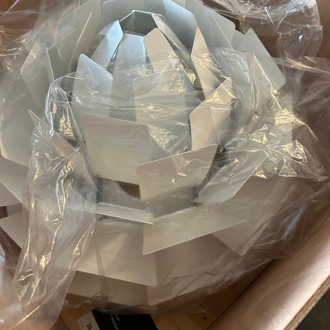 Louis Poulsen PH Artichoke pendel designet af Poul Henningsen. Lampen har et unikt design med flere lag af skærme, der giver et blødt og diffust lys. Fremstillet i metal med en hvid og beige finish.