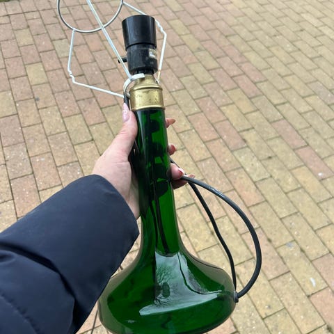 Super flot, sjov og sød Holmegaard Meteor D, bordlampe i smuk flaskegrøn farve.