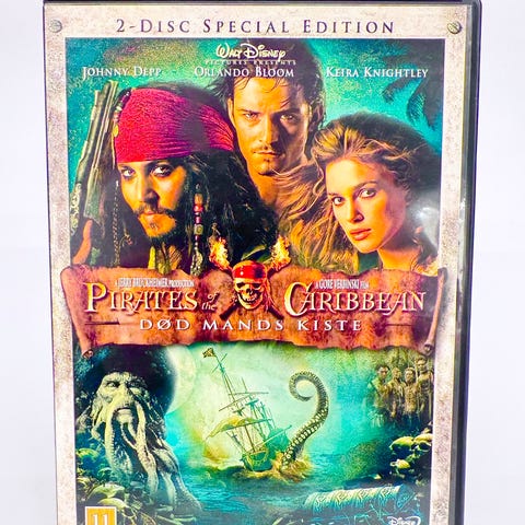 Pirates of the Caribbean Limited Edition DVD med 2 diske. Indeholder bonusfunktioner som kommentarspor, slettede scener, og featurettes. DVD'en er en limited edition med ekstra materiale og indhold relateret til filmen.