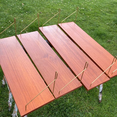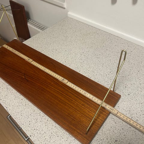 Hylde i teak med messing. Fed patina og gode lange mål, se billederne