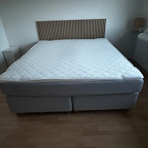 Lækker Viking Birka Kontinental dobbelt seng til salg med Viking Topmadras, samt Viking Gavl. Madrassen er halvt medium og halvt fast.