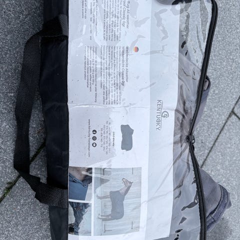 Uåbnet insekt og regndækken i størrelse 130.
