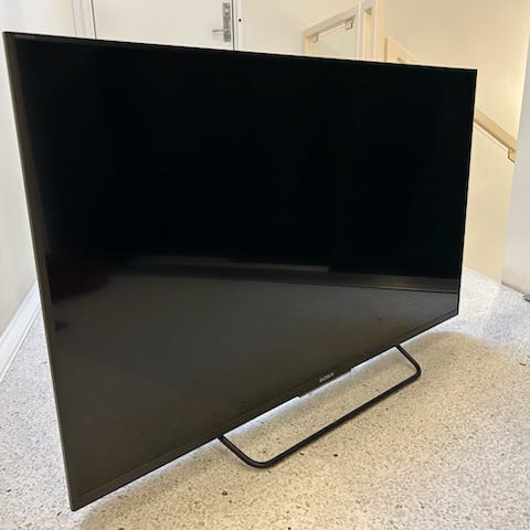 Tv'et har grundet sit slanke design hængt på væggen og foden er derfor bortkommet.