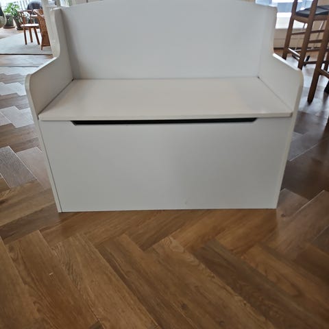 Flexa børnebænk med opbevaring i hvid. Bænken har et låg, der kan åbnes for adgang til opbevaringsrummet under sædet. Velegnet til børneværelser til opbevaring af legetøj eller andre småting.