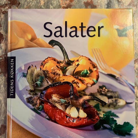 Jeg har til salg bogen Salater. Tidens køkken. Redaktion: Jan Friis-Mikkelsen,. Strandberg Publishing. 2011. 96 sider. Stift forlagsbind (hardback). Bogen er som næsten ny, men på omslagets forside er klæbet en gul label (billedet).
