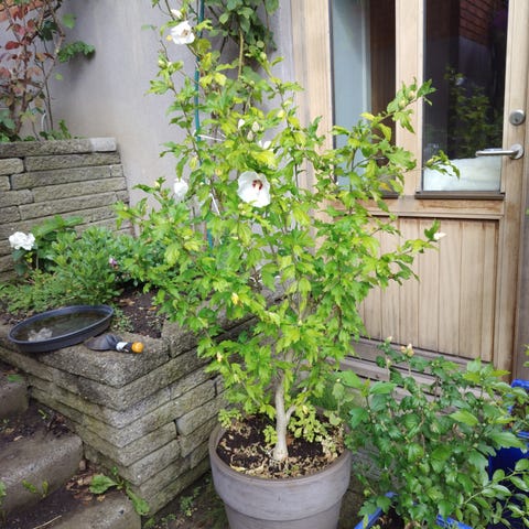 Hibiscus plante med store pink blomster. Velegnet til havebrug eller som potteplante. Blomstrer med tydelige, farverige blomster sås i marts og blomstre juni til oktober det er en staude kaldes også kæmpe hibiscus