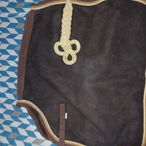 1 brun flecce Tæppe m/gjord stropper str 115, 150 kr