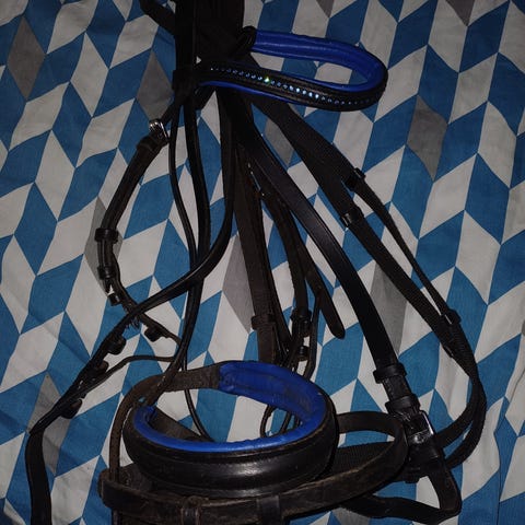 1 trense med blå effekt inkl tøjler str pony, 150 kr