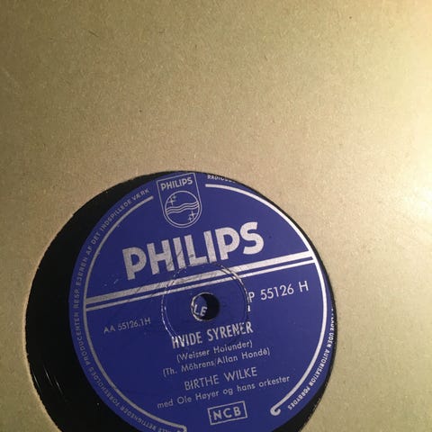 Philips 5000 Volts vinylplade med cover. Sort cover med illustration af fem gående figurer og lyn i baggrunden. Produkt til musikafspilning.