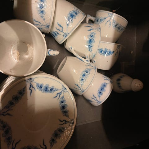 Bing & Grøndahl kaffekopper med underkopper blå/hvid porcelæn