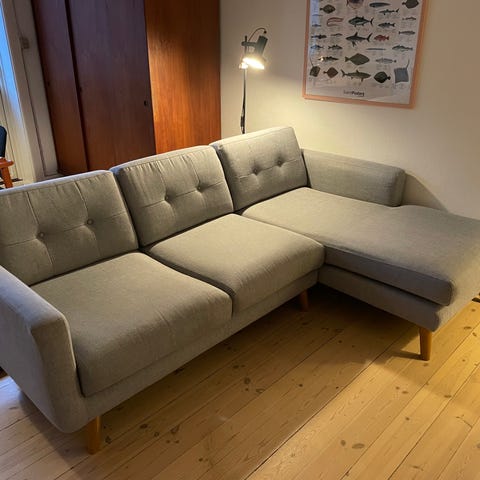 Sofacompany 3p sofa. Chaiselong i højre side. Navy velour. Velholdt uden synlige brugsspor.