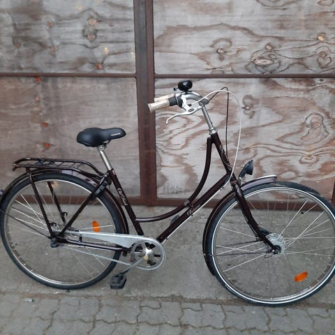 Velholdt og super velkørende klassisk herrecykel fra det hollandske kvalitetsbrand Batavus "Amsterdam". Cyklen kommer med 3 indvendige SRAM T3 gear, håndbremse for, fodbremse, sadel med affjedring, fast lås m. 2 nøgler, dynamolygte/lys for og bag, fine dæk, frakkeskåner samt lukket kædekasse. Kosmetisk fremstår cyklen rigtig fint, og den er helt klar til at komme på gaden. Passer til en person med højden 175-188 cm.