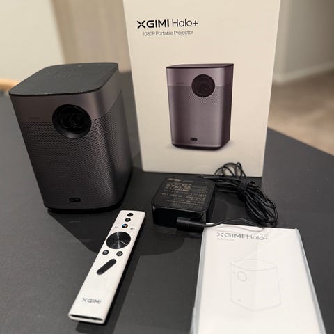 Esselte Moviebox filmfremviser i sort kuffert. Enhed til visning af filmruller med manuel betjening, designet til hjemmebrug.