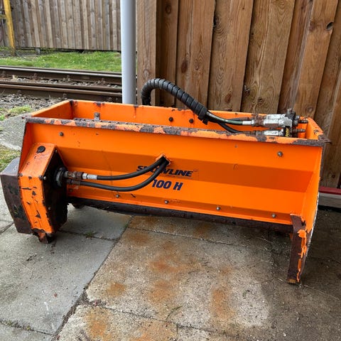 Epoke EpoMini 5 saltudlægger med stor orange beholder og to hjul. Designet til manuel udbredelse af salt på veje og stier for at forhindre glatføre. Robust konstruktion i metal med håndtag til styring.