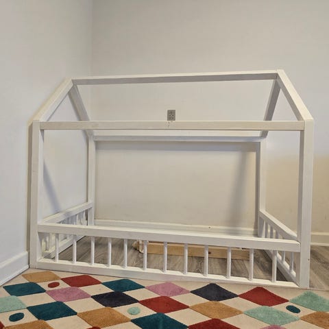 Super hyggelig husseng, har huset to børn og er nu klar til flere. Har synlige spor af leg, som dog nemt kan slibes eller males væk. Er skilt ad men har markeret alle samlinger så den er nem at samle igen.