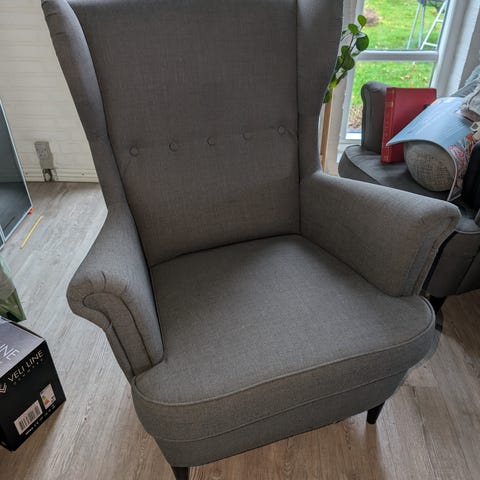 Lænestol fra IKEA med nogle år på bagen. Super god som ammestol. Sælges billigt da den har nogle synlige brugsspor men kan evt vaskes eller dækkes med tæppe.
