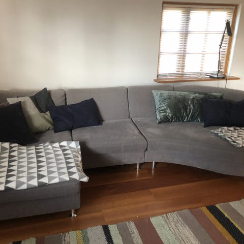 BYD GERNE! Jeg sælger min grå hjørnesofa, da jeg skal have nye. De fejler intet ud over at der er selvfølgelige brugsspor. Der medfølger også 2 nakkepuder, som kan placeres forskellige steder. Betrækket kan pilles af og vaskes - også nakkepudernes betræk. Sofaen kan pilles fra hinanden i 3 dele, og kan både være venstre og højre kant. Sofaen er købt fra Daells Bolighus. Kan eventuelt afhentes den 4. Januar eller efter aftale. Byd gerne.