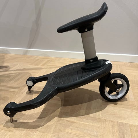 Bugaboo Comfort Wheeled ståbræt med sæde til store søskende op til 20 kg. Kan nemt klikkes af og på barnevognen og vippes op når det ikke bruges.