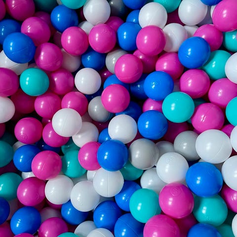 En sæk med bolde. Euro-matic er danskproducerede bolde til boldbassin.