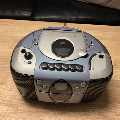 Sharp Radio med bærbar design og integrerede højttalere. En klassisk model til afspilning af radio og kassettebånd.