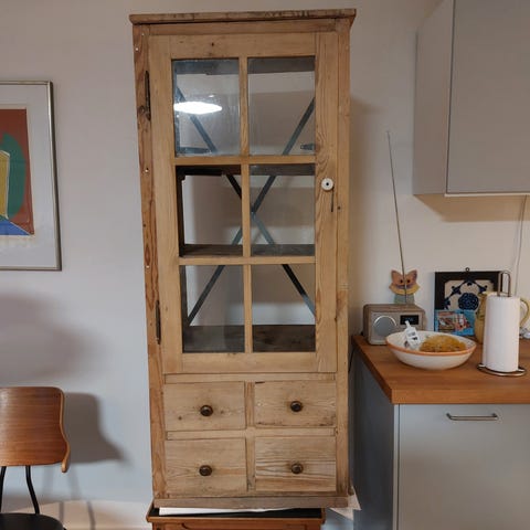 Gammelt retro køkkenskab. Trænger til en kærlighånd. Dybde: 30 cm i toppen og 25 cm i bunden