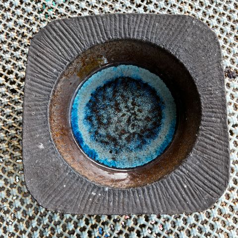 Fad i keramik, Rusa, Smukt gammelt fad blålige farver - lille - har måske mini hak i kant eller også skal det være sådan. Se sidste billede. Ø 19,2.