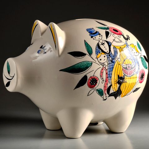 Sparegris i håndmalet keramik, den store model ✔️ Ægte Retro fra 1950’erne 🤩 Fuld intakt 👍🏼