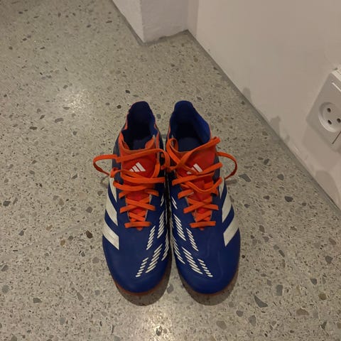 Adidas F50 fodboldstøvler i blå og pink farver. Designet til brug på græsbaner med snørelukning og slidstærkt materiale.