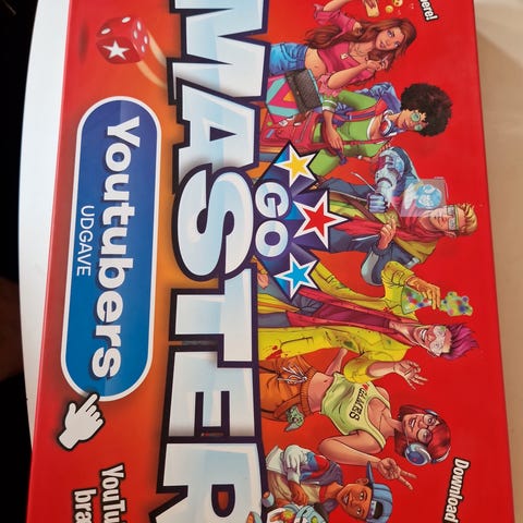 Go Master Youtubers brætspil med tema baseret på populære YouTube-profiler. Indeholder spillekort og terning, designet til flere spillere.