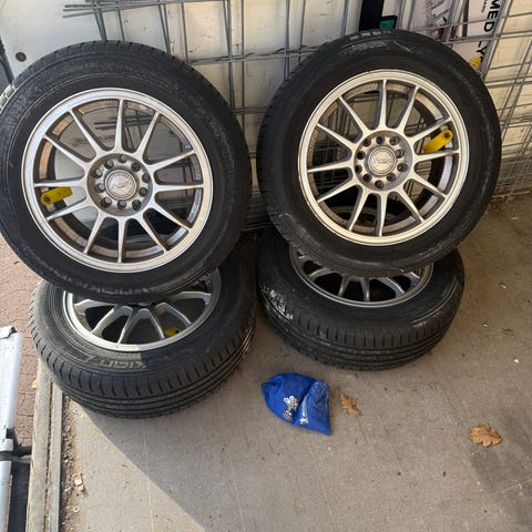 5 stk vildt fede yaris fælge 17 tommer med rimelige dæk på nu. men 4 ny indkøbte dæk medfølget super lav profil